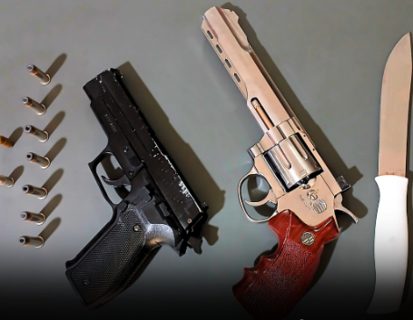 Na busca pessoal foram encontradas munições de calibre .38 e dentro do carro um revólver calibre .38 com numeração suprimida, um simulacro de pistola, além de mais munições.