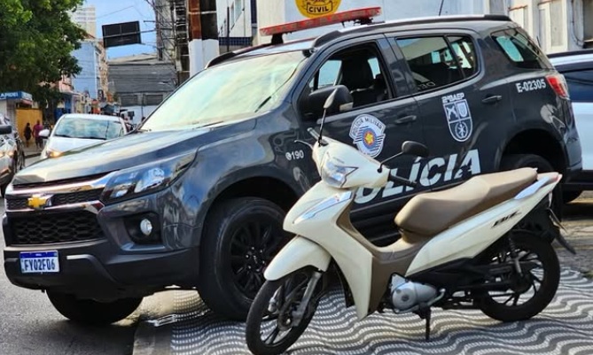 A mulher detida, a motocicleta e todo o material apreendido foram encaminhados ao 1º Distrito Policial de São Vicente, onde a ocorrência foi registrada.
