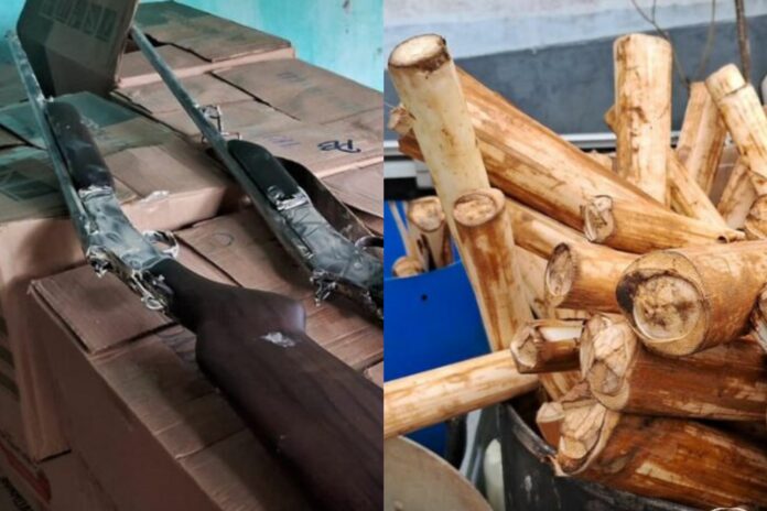 Durante a fiscalização, que aconteceu na última semana, foram encontradas 107 hastes de palmito juçara in natura e 26,7 quilos em conserva, espécie considerada ameaçada de extinção. Também foram apreendidos 52 quilos de carne de caça, oriunda de animais silvestres como teiú, tatu, paca, cateto e capivara, além de quatro armas de fogo e munições de diversos calibres.