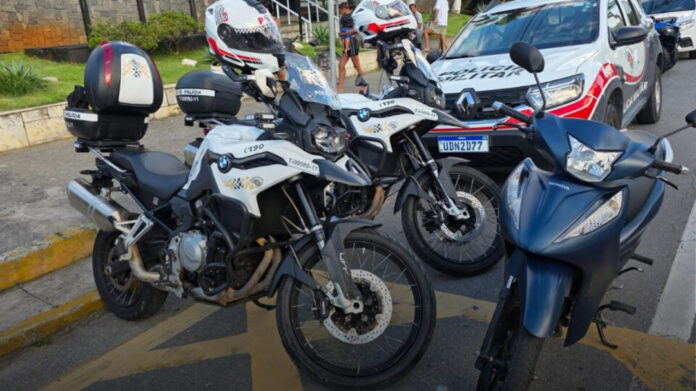 A equipe visualizou uma motocicleta, ocupada por um casal, que ao perceber a fiscalização realizou manobra brusca, transpondo o canteiro central e retornando no sentido contrário da via.