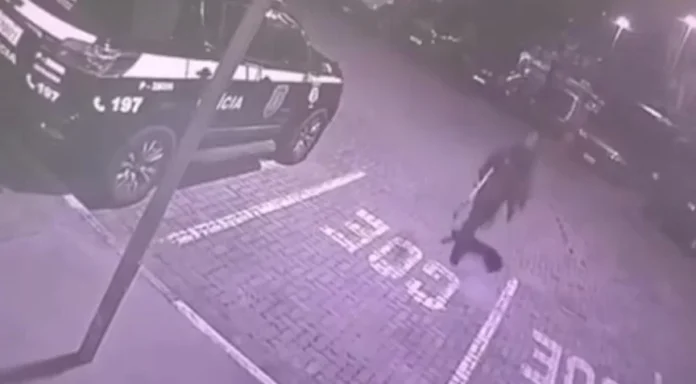 Imagens de câmeras de monitoramento mostram o suspeito de cometer o crime nas adjacências da delegacia, antes de cometer o crime.