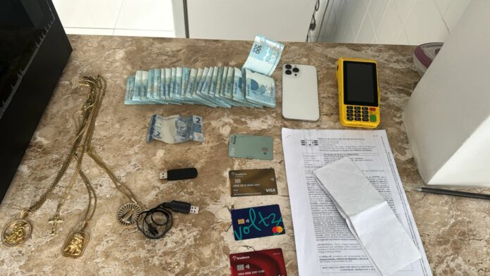No apartamento, situado no bairro Boa Vista, os agentes foram recebidos por uma funcionária da residência na manhã de segunda-feira (18). Durante as buscas, foram encontrados computadores, aparelhos celulares, máquinas de cartão de débito, cartões bancários variados em nome de terceiros, pen-drives, correntes de metal amarelo, balanças de precisão, recibos de compra de dólar e a quantia de R$19.904,00, em espécie.