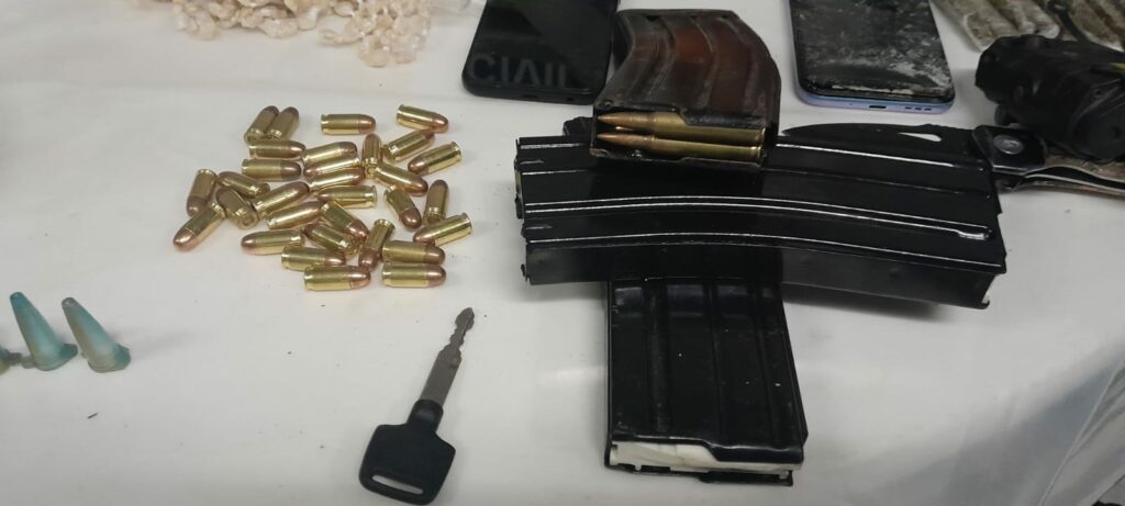 Com ele, havia porções de drogas, anotações de contabilidade do tráfico, 11 celulares, rádios comunicadores, dinheiro e um acessório de arma de fogo de uso restrito das forças armadas. O homem foi preso por tráfico de drogas e associação criminosa.