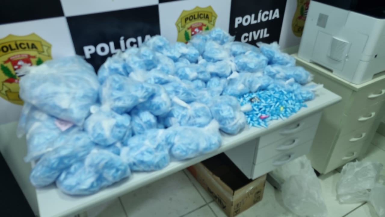 Equipes da policia civil foram até um apartamento no bairro Parque São Vicente, visualizaram um homem guardando uma caixa de som no porta-malas de um carro, que era utilizado para a entrega dessas drogas nos pontos de tráfico da região.