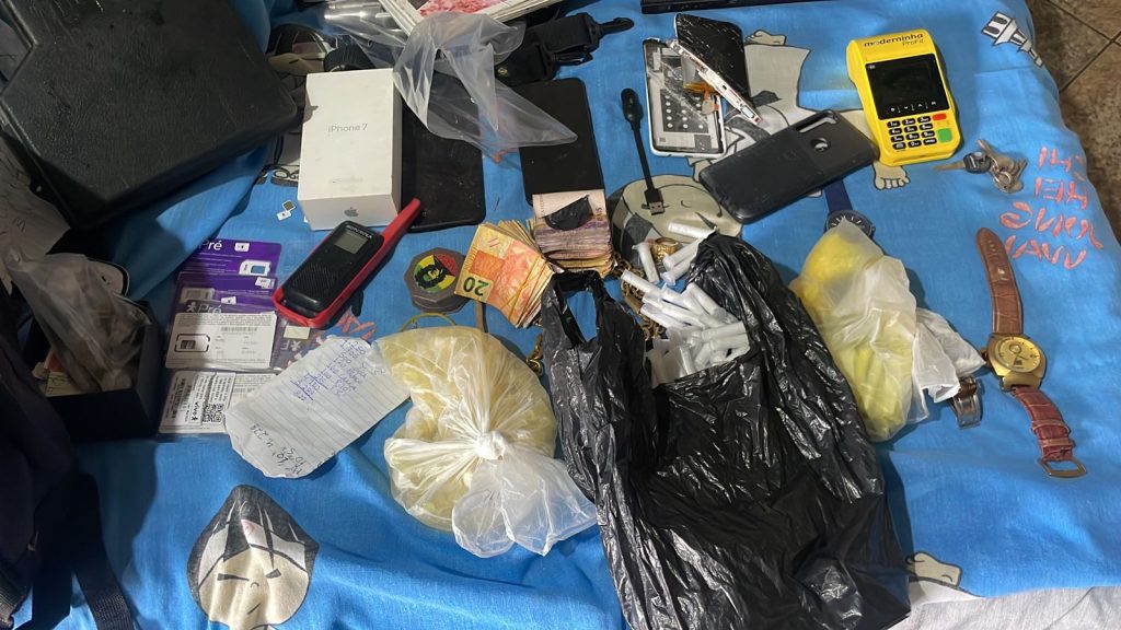 Enquanto isso, as buscas pelos responsáveis por darem os tiros foram feitas e dois suspeitos foram presos, Com a dupla, os policiais encontraram uma submetralhadora, uma pistola, dinheiro e drogas.
