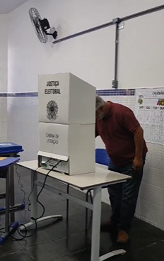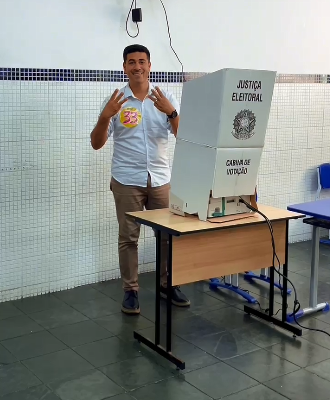 O candidato Danilo Sugoi (MOBILIZA), esteve presente por volta das 15h, na Escola Municipal Lions Clube Ocian, no bairro Cidade Ocian, com toda a família, e seu número estampado nas camisas. Antes de apertar ‘confirma’, fez seu número com as mãos para a imprensa.