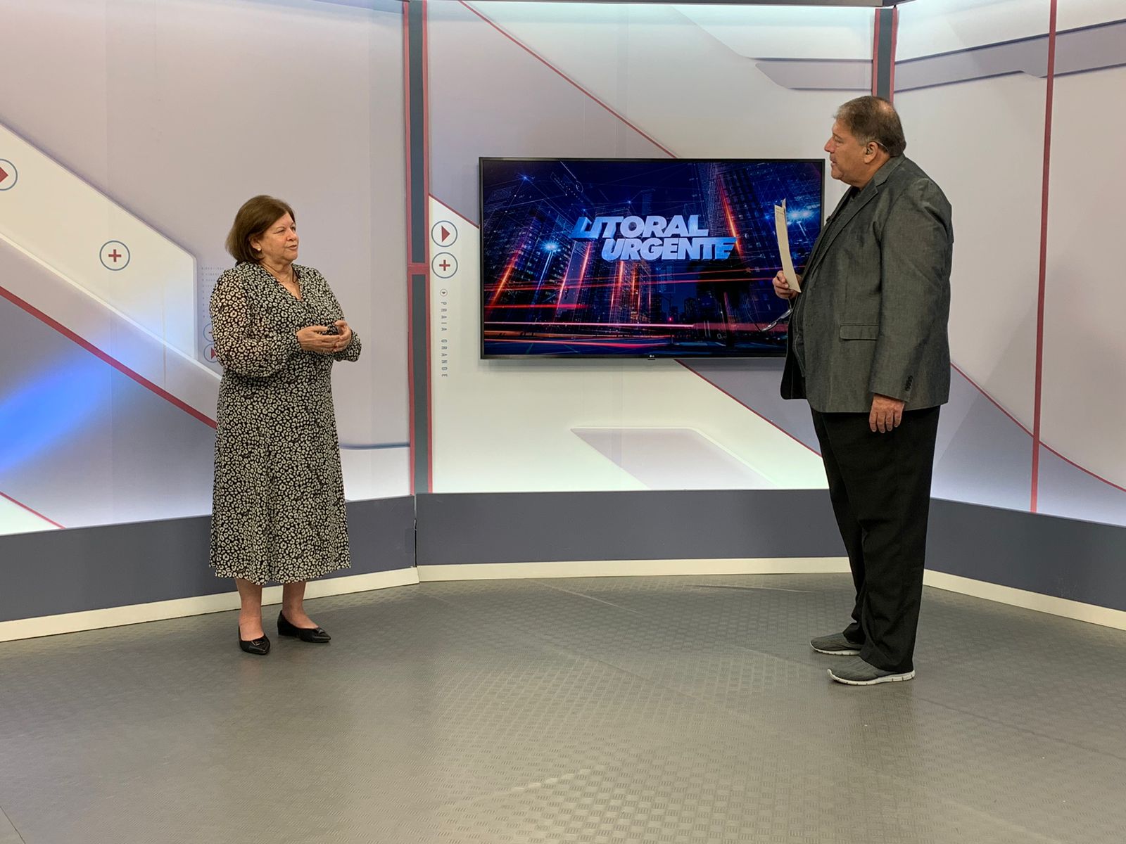 A prefeita da cidade de Praia Grande, Raquel Chini, visitou nesta sexta-feira (26), os estúdios da TV Thathi Band Litoral para um bate-papo ao vivo com o apresentador Luciano Faccioli no programa Litoral Urgente, onde conversaram sobre assuntos ligados à gestão da cidade