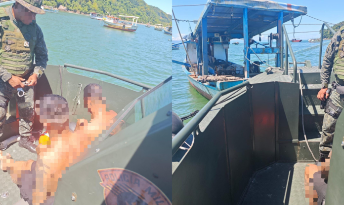 Dois homens, de 23 e 24 anos, que estavam na condição de procurados da Justiça, foram capturados pela Polícia Militar Ambiental durante uma fiscalização na região de Perequê, na cidade de Guarujá, litoral paulista. A dupla estava em uma embarcação pesqueira.