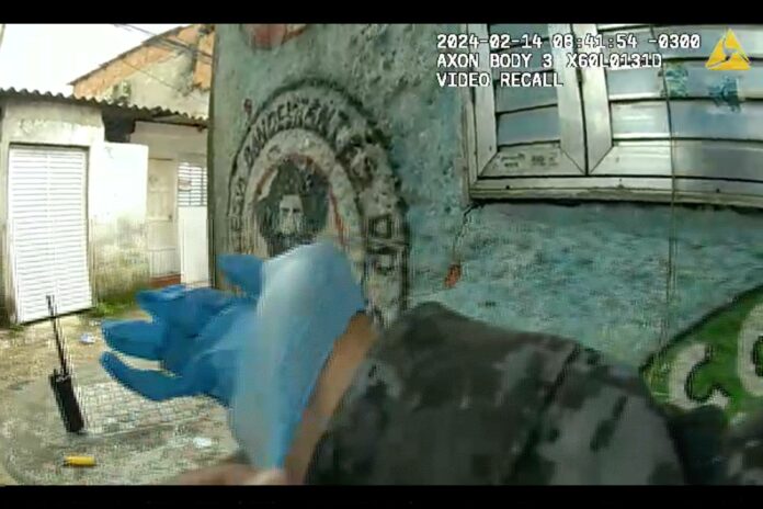 Já as fotos da perícia de Layrton mostram marcas em seus ombros e braços indicando que alguém, com os dedos manchados de sangue, pode ter mudado a posição do corpo. As imagens também mostram objetos atribuídos a ele –um rádio-comunicador e uma sacola plástica com drogas– sem nenhum respingo de sangue, mesmo que houvesse manchas por todo o chão e nas paredes.