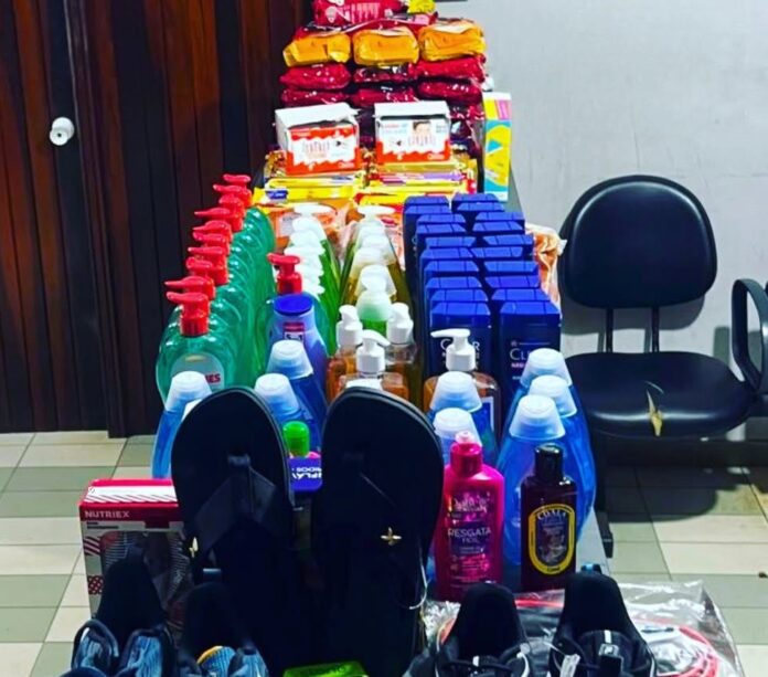 A equipe conseguiu localizar o automóvel foi localizado e realizar a abordagem dos indivíduos que estavam no interior do veículo. No carro, foram encontrados diversos produtos furtados, como alimentos, produtos de higiene, chinelo, tênis, entre outros.