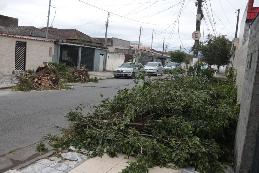 A Prefeitura de Mongaguá disse que, na noite de sábado e na madrugada deste domingo, foram registradas duas ocorrências relacionadas à ventania: a queda de uma árvore e a queda de um poste residencial de energia. Não houve feridos ou desabrigados.