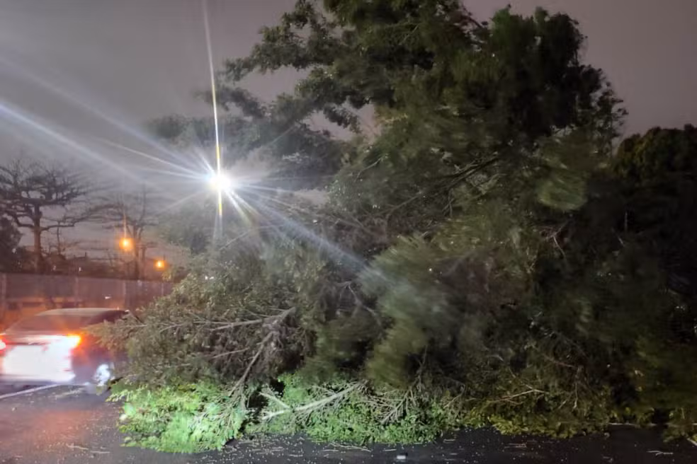 A Prefeitura de São Vicente informou que a Defesa Civil foi acionada para atender ocorrências de quedas de quatro árvores e um muro nas proximidades da linha amarela.