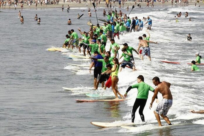 A ideia inovadora é bater o recorde mundial do Guiness Book, na Cidade do Cabo, na África do Sul, onde 110 surfistas deslizaram numa mesma onda. A expectativa é de que pelo menos 250 surfistas, com mais de 50 anos estejam juntos nesse desafio.