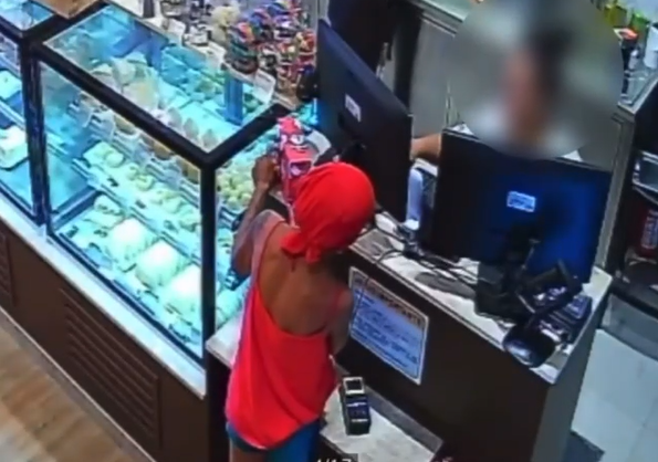 A suspeita estava com um pano vermelho na cabeça, e segundo relatos, alegou que estava com câncer, distraindo então a funcionária. O caso aconteceu na Avenida Thiago Ferreira. Ela chegou a fazer um pedido grande pra atendente, mas depois cancelou tudo e foi embora com o item furtado.