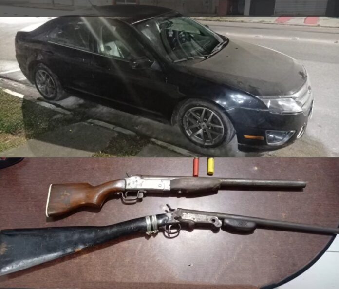 A prisão aconteceu neste sábado (19), durante patrulhamento da equipe do 2º Grupamento, da 3ª Companhia do 29º Batalhão de Polícia Militar do Interior. Com base em informações recebidas, a equipe conseguiu localizar com êxito um suspeito em posse de duas armas de fogo.