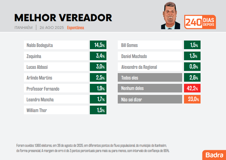 Além dos questionamentos em relação a gestão do prefeito, também foram questionados os melhores vereadores da cidade, confira abaixo: