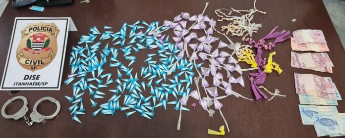 Um homem, de 28 anos, foi preso em flagrante por tráfico de drogas na cidade de Itanhaém, litoral paulista, após ser visto realizando uma venda. Com ele, foram apreendidos mais de 350 pinos de cocaína, além de mais de 100 pedras de crack.