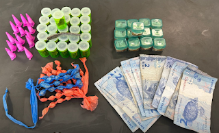 A atitude levou a equipe a realizar a abordagem e na busca pessoal foi localizado em um de seus bolsos, cinco eppendorfs de cocaína, 19 pedras de crack e uma porção de maconha. O local foi vasculhado para localizar o que ele havia se desfeito e foram encontradas uma quantia de R$22,00 e uma sacola preta contendo 13 porções de maconha, 43 pedras de crack e 26 porções de skunk.