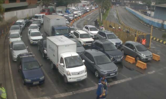 Pela manhã, por volta das 8h, a espera na margem guarujaense chegou a ultrapassar uma hora, enquanto em Santos, motoristas enfrentavam 35 minutos.
