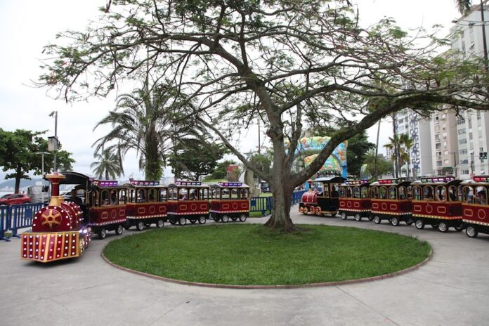 Outra atração que vem conquistando os pequenos é o trenzinho elétrico, que circula no entorno do Aquário. A atração passa por diversos pontos de Santos, em pórticos infláveis desenhados pelo artista Mauriomar Cid. O túnel interativo funciona todos os dias, das 14h às 22h, enquanto o passeio do trenzinho é realizado às sextas, das 17h às 22h, e aos sábados e domingos das 14h às 22h.