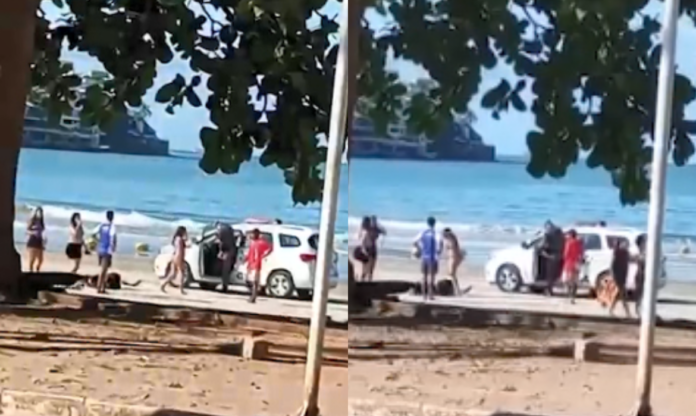 Segundo informações extraoficiais, o crime aconteceu na faixa arenosa, enquanto a vítima estava sentada em cadeiras de praia e guarda-sol. O casal teria vindo de motocicleta para o litoral paulista e chegado há pouco tempo.