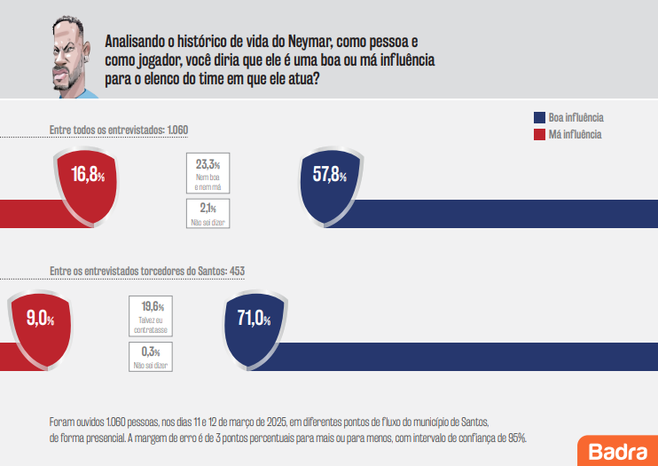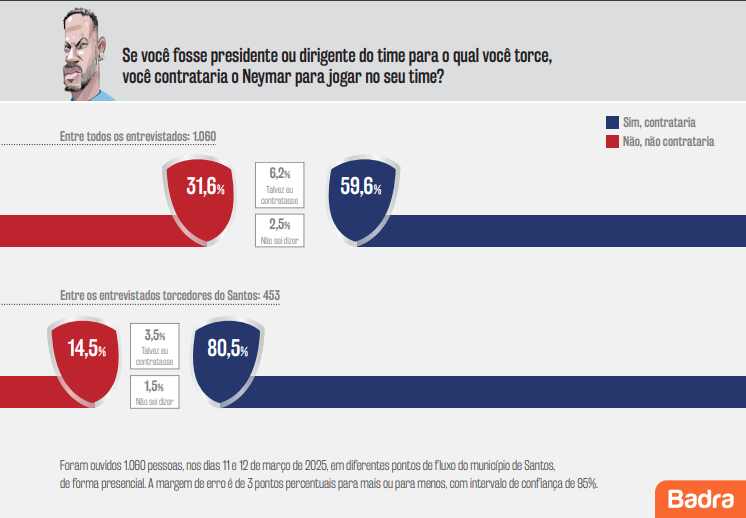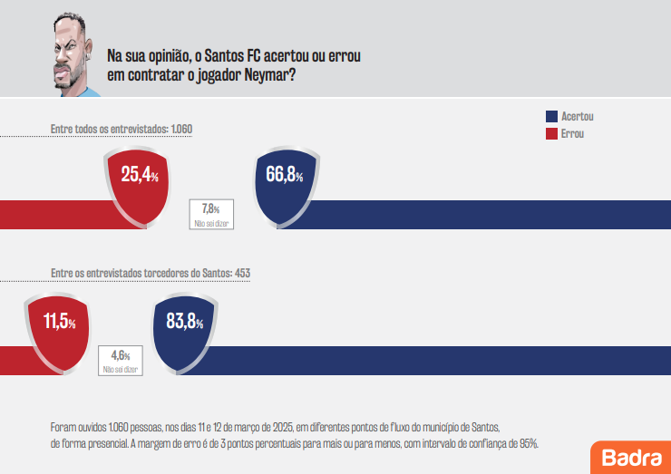 O Instituto Badra foi às ruas de Santos para buscar identificar o real sentimento da população e dos torcedores santistas acerca da contratação de Neymar: afinal de contas, o Santos FC acertou ou errou em repatriar o atacante?