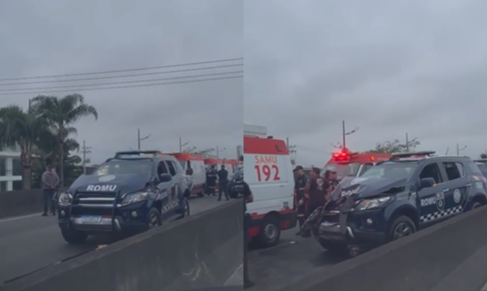 Três viaturas da Romu (Rondas Ostensivas Municipais) de Praia Grande, sofreram um engavetamento enquanto trafegavam na Via Expressa Sul. Ninguém ficou ferido.