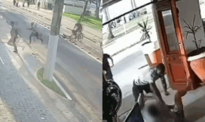 Um homem foi brutalmente atacado por dois criminosos, na orla da Praia da Enseada, na cidade de Guarujá, litoral paulista, durante um roubo. A vítima ainda tentou fugir para o hall do hotel, mas os indivíduos não se intimidaram, e um deles adentrou o local para concluir a ação criminosa.