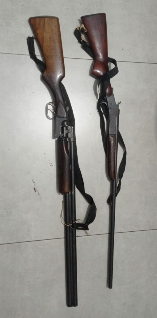 Mais de vinte supostos funcionários foram abordados, além do proprietário. Em buscas na casa do suspeito, que fica na parte superior do galpão, os policiais localizaram duas armas de fogo tipo espingarda, calibres 12 e 32, acompanhadas de várias munições, sem autorização legal ou regulamentar.