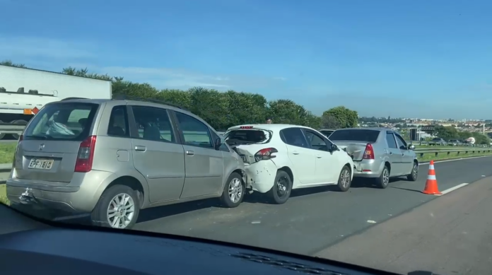 Um engavetamento envolvendo cinco veículos deixou o trânsito lento na Rodovia Anhanguera SP-330 na manhã desta terça-feira 31. O acidente foi reflexo do tombamento de uma carreta no quilômetro 111, próximo a Sumaré.