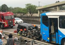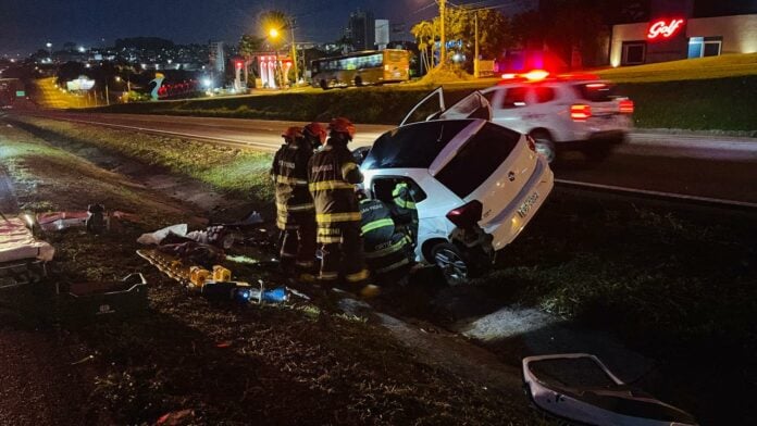 O motorista do carro foi socorrido ao Hospital com ferimentos graves. As causas do acidente vão ser investigadas pela Polícia.