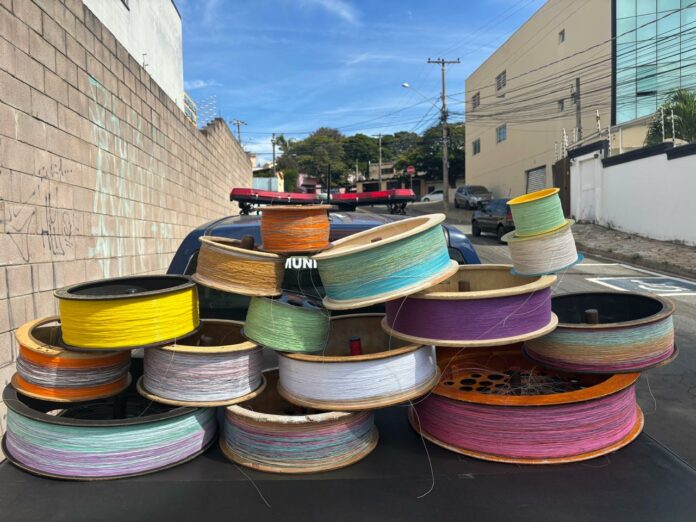 Durante patrulhamento de rotina no Jardim Samambaia, nesta terça-feira (27), em Campinas, agentes de segurança apreenderam bobinas de linha com cerol que haviam sido abandonadas por adolescentes em uma área onde frequentemente ocorrem solturas de pipas.