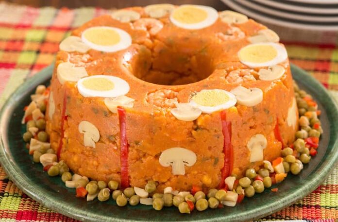 Adicione o frango desfiado, o milho, o palmito e as azeitonas. Misture bem. - Cozinhe o cuscuz: