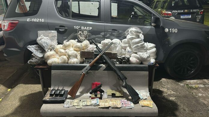 No local, foram encontrados 96,128 quilos de entorpecentes, entre eles cocaína, pasta base, maconha e o composto conhecido como “dry”. Também foram apreendidas três armas de fogo: uma pistola calibre .380, uma carabina calibre .38 e um rifle calibre .22. Além disso, os policiais localizaram 127 munições de calibre .380, 54 cápsulas deflagradas do mesmo calibre, duas munições de calibre .38 intactas e 98 cápsulas deflagradas.