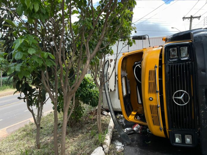 Caminhão frigorífico tomba em Cordeirópolis após perder freio