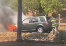 O acidente aconteceu por volta das 10h30 desta manhã, as equipes do corpo de bombeiros e da concessionária Autoban seguem no local realizando o resfriamento do veículo.