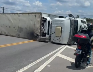 Imagens registradas no local mostram a situação da rodovia após o tombamento, com a carreta bloqueando totalmente a via. Por conta da interdição, foi necessário realizar o desvio do tráfego, o que provocou congestionamento e lentidão na região.