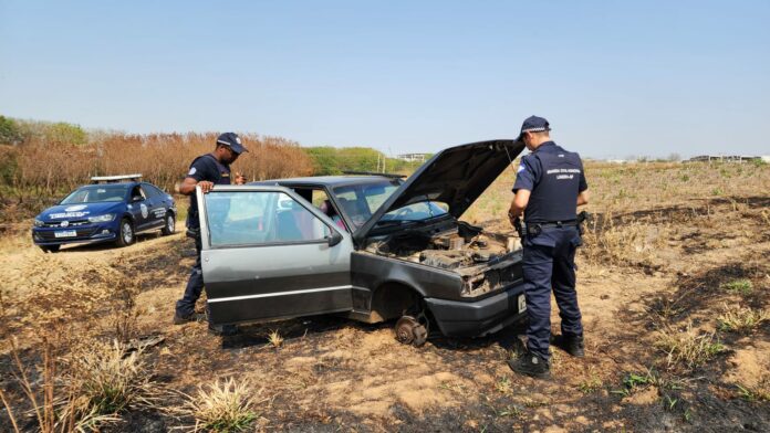 Sem as quatro rodas, sem a bateria e sem os faróis e com placas de outros veículos na dianteira e na traseira. Foi dessa foram que um carro foi encontrado por guardas municipais em Limeira nesta terça-feira, 24. O veículo era furtado.