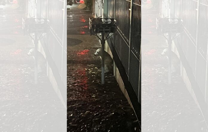 Com a intensificação da chuva, o cachorro ficou acuado na calçada, exposto à tempestade e sem proteção. Felizmente, ele foi resgatado por uma equipe do Setor de Bem-estar Animal de Nova Odessa e encaminhado para atendimento veterinário.