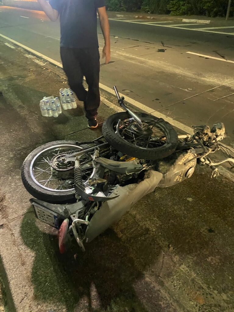 Uma viatura da Guarda Municipal passava próximo ao local quando foi acionada para atender a ocorrência. Os agentes foram informados por testemunhas que o outro motociclista deixou o local logo após o acidente e teria colocado a moto na caçamba de uma caminhonete.