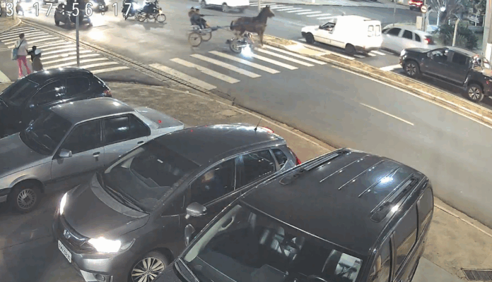 Uma cena inusitada surpreendeu moradores e motoristas em Americana. Na manhã desta terça-feira (data pode ser inserida), um cavalo que puxava uma charrete atropelou um motociclista no cruzamento da movimentada Avenida Cillos, uma das principais vias da cidade.