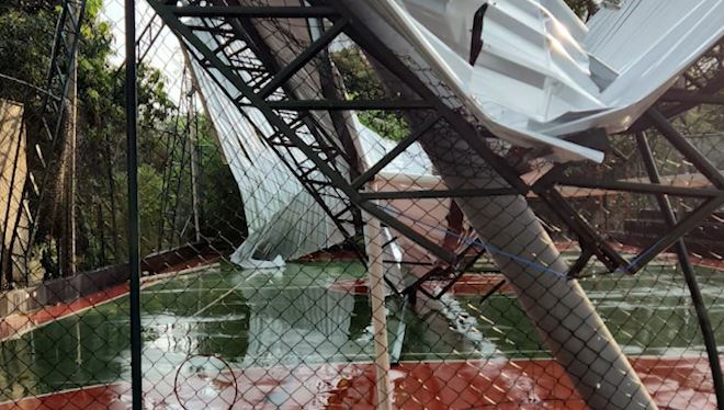 A chuva que atingiu a cidade de Mogi Mirim, na tarde desta quinta-feira (24/08), derrubou a cobertura da quadra da Escola Municipal de Educação Básica Professor Bráulio José Valentim, que fica no Distrito de Martim Francisco.