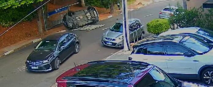 Um veículo na contramão provocou o capotamento na rua Mogi Guaçu, no bairro Chácara da Barra, em Campinas. Imagens de monitoramento registraram o momento exato do acidente.
