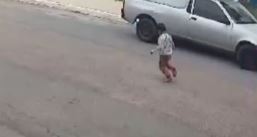 Segundo as imagens das câmeras de segurança, a criança é vista correndo pela rua e acessa uma via lateral.