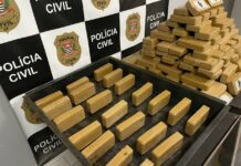 Durante a ação, a polícia apreendeu 137 quilos e 200 gramas de maconha, 826 gramas de cocaína, além de munições de diversos calibres. Também foram encontrados no local uma pistola Taurus modelo G2C calibre 9mm com numeração suprimida, um simulacro de fuzil, dois simulacros de pistola, três celulares, quatro balanças de precisão, sete mil frascos tipo “eppendorf” vazios e uma máquina de cartão.