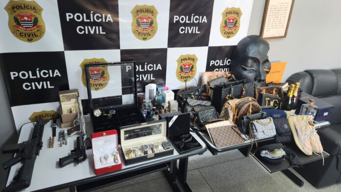 Na casa dos suspeitos a polícia encontrou acessórios, óculos, relógios de luxo, perfumes e bolsas de grifes internacionais que haviam sido roubados.