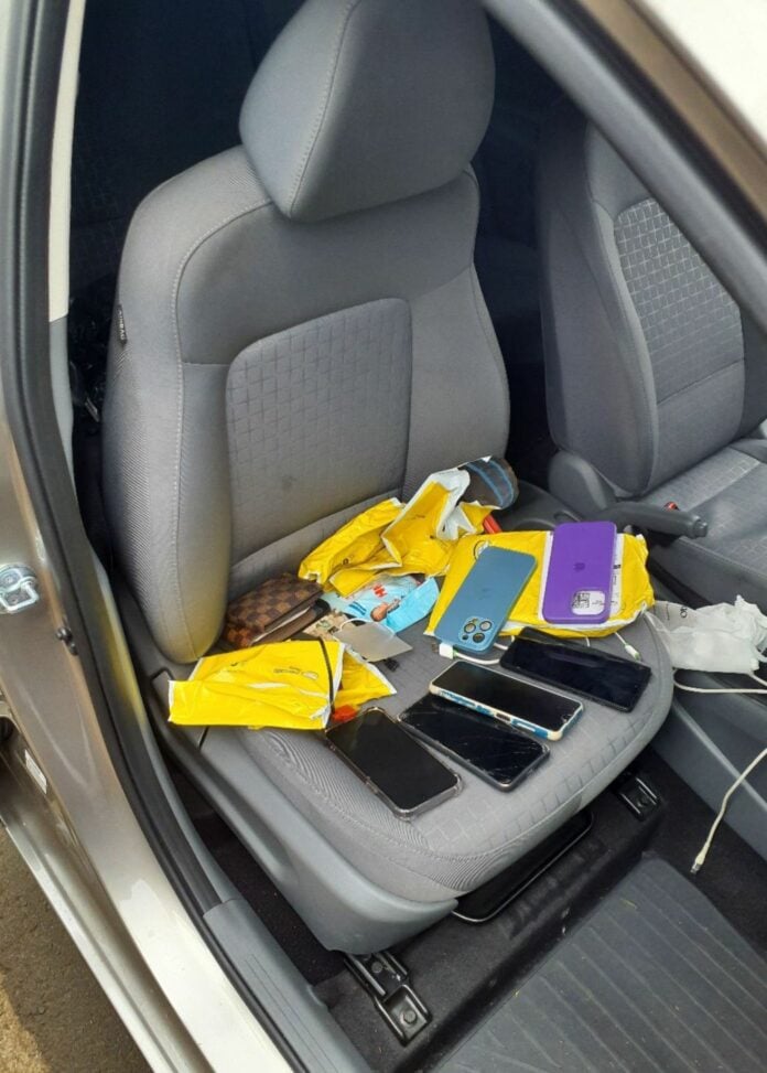 Os guardas apreenderam com a dupla quatro celulares e diversos pacotes com etiquetas das cores e do emblema de uma empresa de vendas pela internet, sugerindo a possível utilização desses itens para dar maior credibilidade ao golpe.
