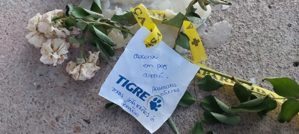 Homenagens foram deixadas por populares que conheciam o empresário em frente a porta do comércio que permanece fechado.