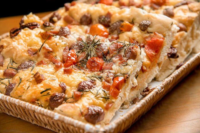 A focaccia é um clássico da panificação italiana que combina textura macia por dentro e crocância por fora. Pode ser servida apenas com azeite, sal grosso e alecrim ou ganhar novas versões com recheios como pepperoni, cebola roxa e parmesão.