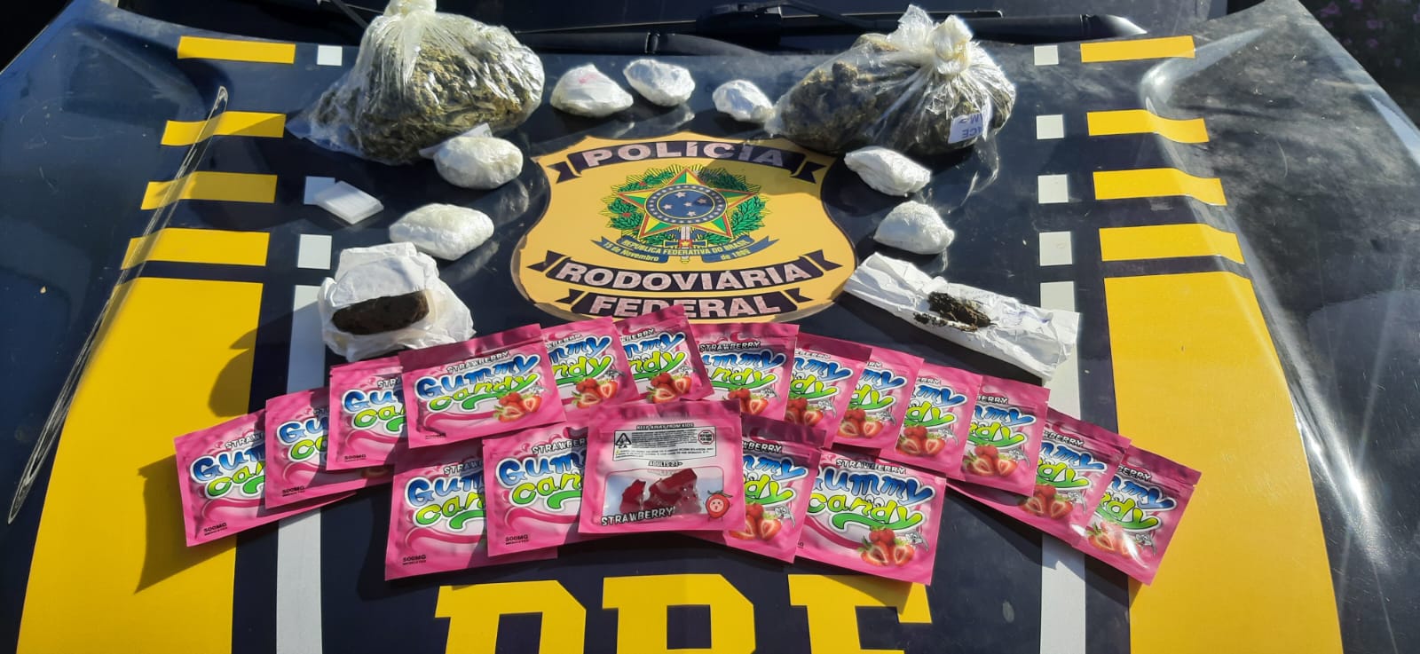 Houve um intenso acompanhamento até que ele foi abordado (veja vídeo). Na revista veicular, foram localizadas porções de cocaína e tijolos de maconha.